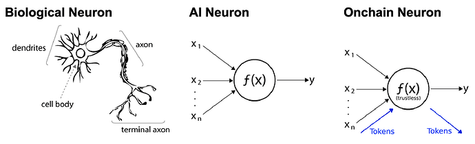 Just as AI neurons process and transmit information within a neural network, onchain neurons process and transmit information AND value within a decentralized network.